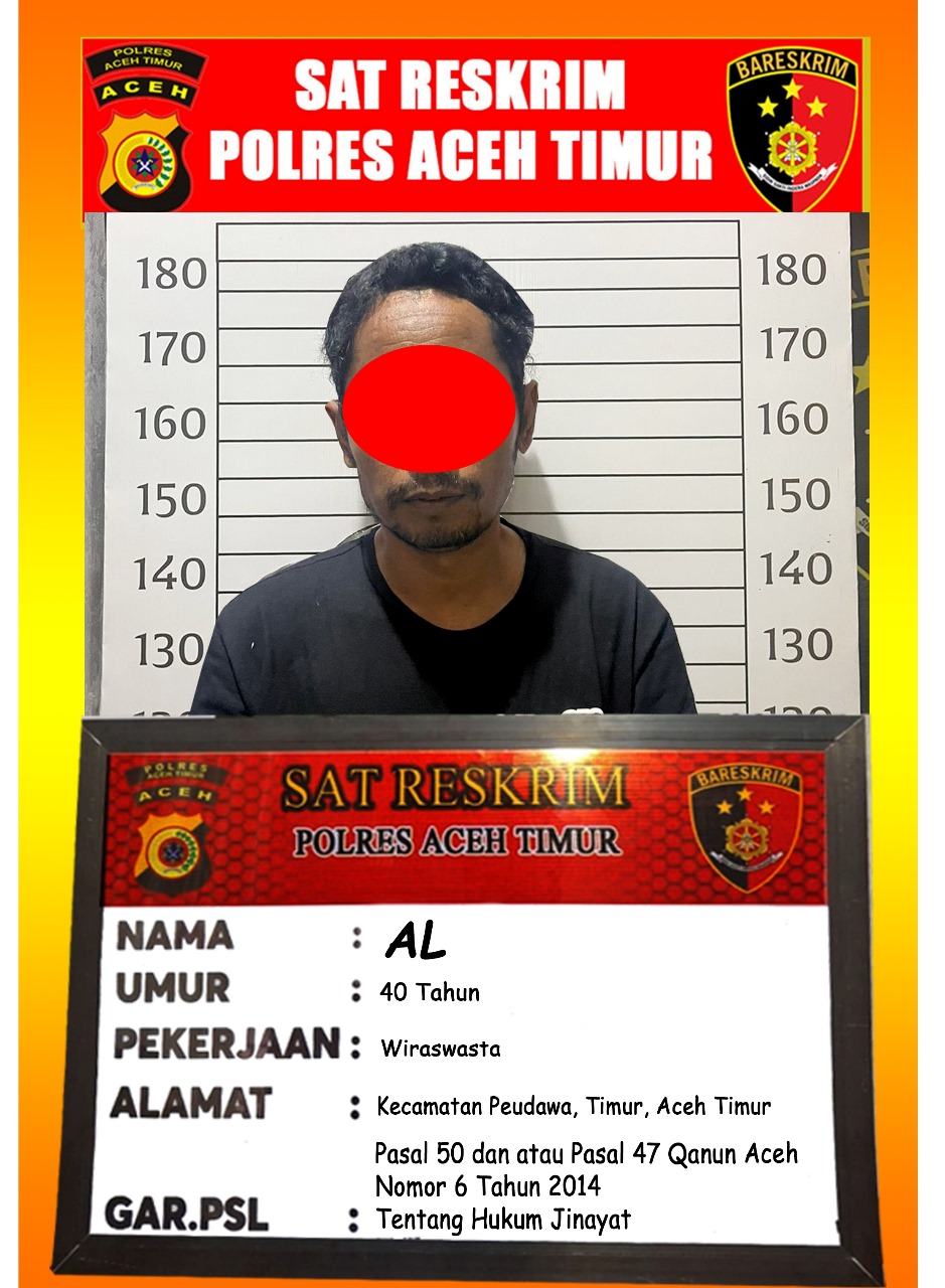 Kasat Reskrim Polres Aceh Timur Iptu Adi Wahyu Nurhidayat, S.TrK.,S.I.K. menyebutkan, pelaku berinisial AL (40) warga kecamatan Peudawa, kabupaten Aceh Timur.