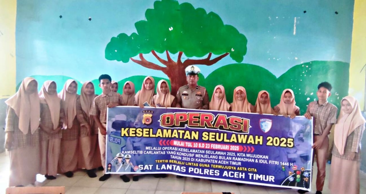 TROL, Aceh Timur – Satuan Lalu Lintas (Satlantas) Polres Aceh Timur, Polda Aceh melaksanakan Sosialisasi Operasi Keselamatan Seulawah Tahun 2025 kepada pelajar SMA Negeri 1 Peudawa sebagai bagian dari upaya meningkatkan kesadaran berlalu lintas.