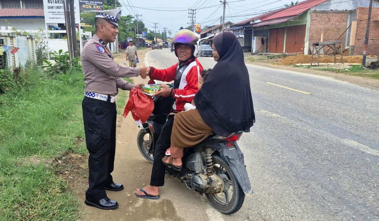 Ops Seulawah 2025, Satlantas Polres Aceh Timur Bagikan Nasi Kotak