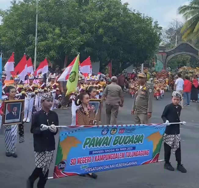 TROL, Tulungagung – Dalam rangka memperingati HUT ke-80 Republik Indonesia, Pemerintah Kabupaten Tulungagung melalui Dinas Pendidikan menggelar Pawai Budaya Bhinneka Tunggal Ika tingkat SD/MI, Minggu (24/8).