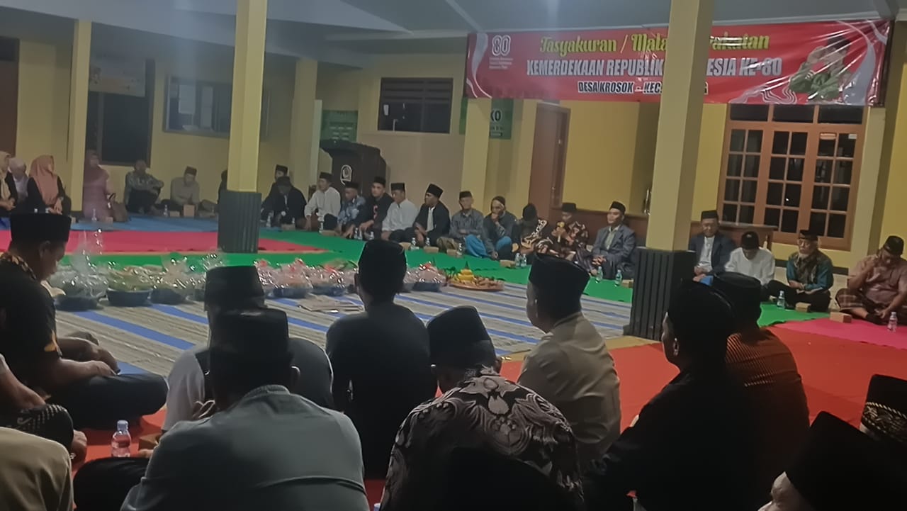 Susanto Kepala Desa Krosok menyampaikan bahwa malam tirakatan merupakan bentuk penghormatan dan refleksi terhadap perjuangan para pahlawan serta momentum untuk mempererat kebersamaan antar warga desa.