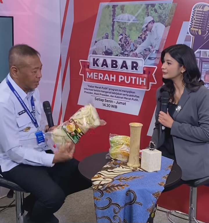 foto : bupati gatut sunu saat memperkenalkan produk unggulan, krupuk rambak tulungagung di apkasi otonomi expo 2025