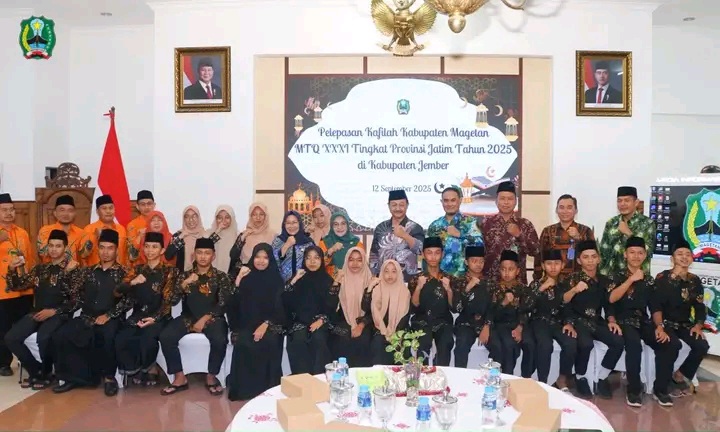 TROL, Magetan – Sebanyak 19 peserta MTQ, 6 official kontingen MTQ Kabupaten Magetan diberangkatkan oleh Bupati Magetan untuk mengikuti MTQ tingkat Provinsi ke XXXI tahun 2025 di Jember Jawa Timur. Acara di gelar di Ruang Jamuan Pendopo Surya Graha Kabupaten Magetan pada Jum’at (12/9).