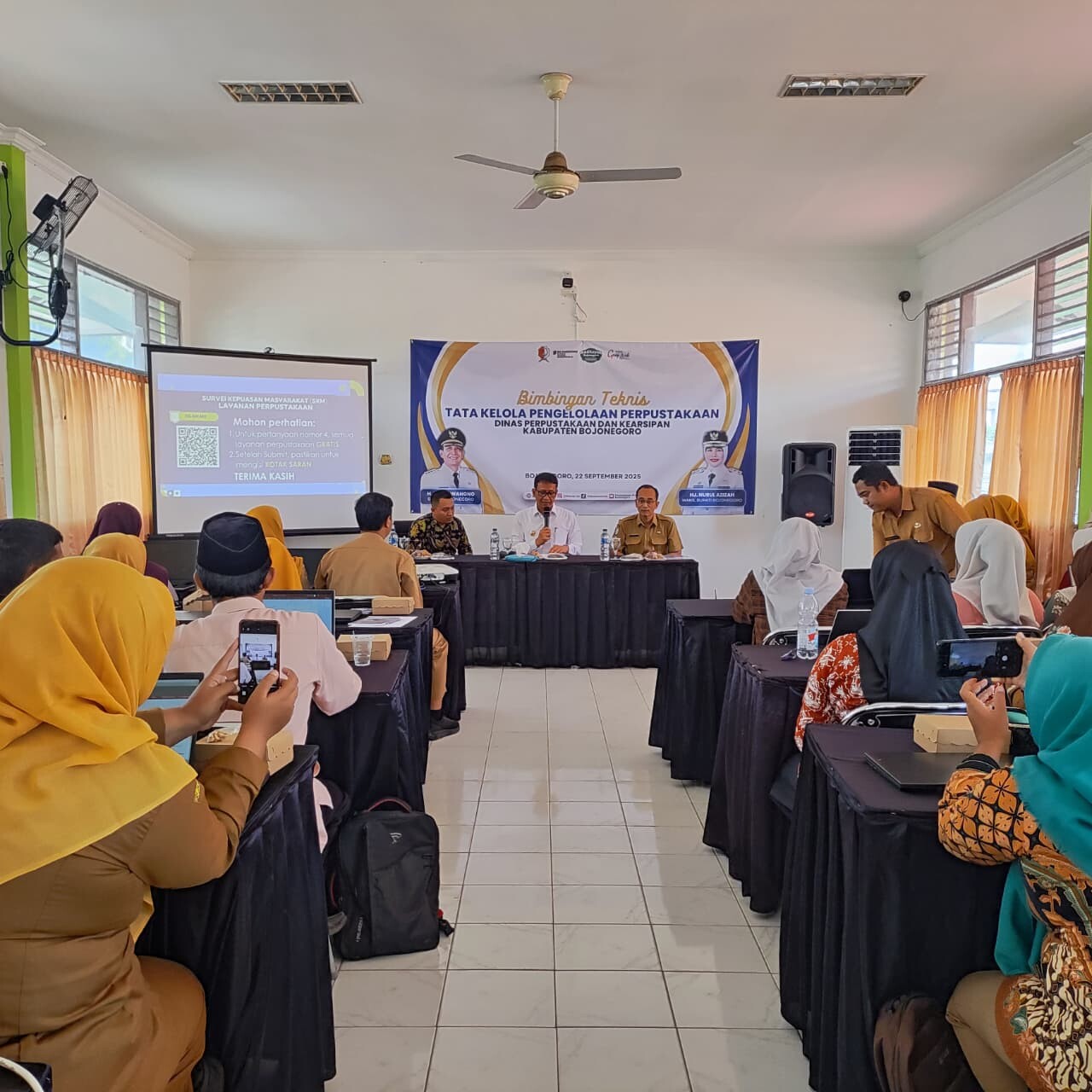 Bimtek berlangsung di Aula Kantor Dispusip Bojonegoro dan diikuti 50 peserta yang terdiri dari 10 pustakawan perpustakaan kecamatan, 20 pustakawan perpustakaan desa, 7 pustakawan perpustakaan SD/MI, 5 pustakawan perpustakaan SMP/MTs, dan 3 pustakawan TBM.