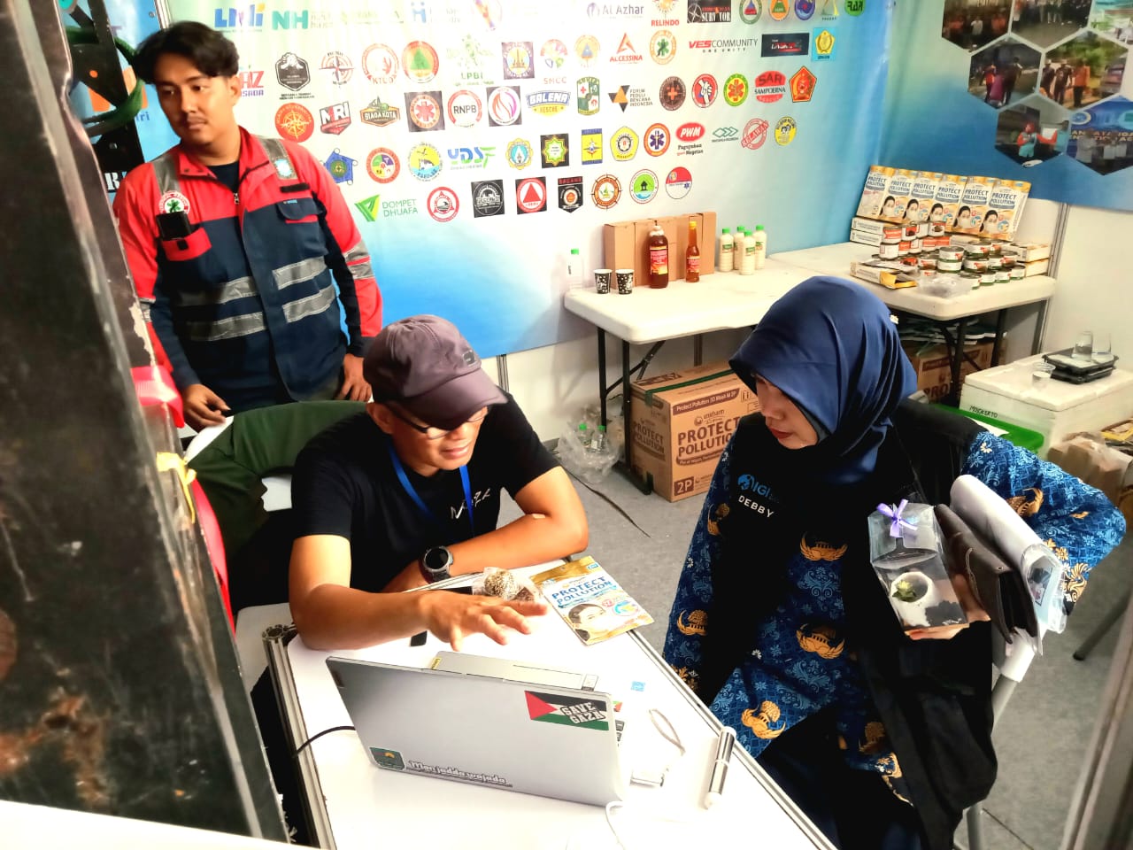 Sekber Relawan Penanggulangan Bencana (SRPB) Jawa Timur ikut meramaikan Bulan PRB dengan mendirikan dua stan. Para pengunjung yang hadir tampak antusias melihat suasana di dalamnya.