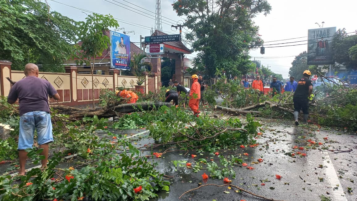 Sekretaris BPBD Kota Blitar, Gatot Widodo, menyampaikan berdasarkan laporan, setidaknya ada sekitar 18 pohon yang tumbang di beberapa titik, seperti di Jl. Bali, Jl. Wilis, Jl. TGP, Jl. Jawa dan lainnya. Rata – rata pohon yang tumbang memiliki diameter antara 10 – 60 sentimeter. Sebagian pohon yang roboh juga menimpa fasilitas umum dan properti warga.