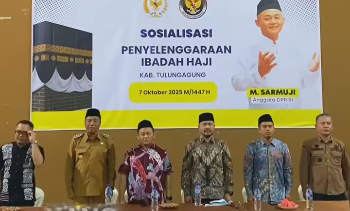 TROL, Tulungagung – Bupati Tulungagung Gatut Sunu Wibowo menghadiri Sosialisasi Penyelenggaraan Ibadah Haji Tahun 2025 di GOR Gedung Serba Guna-Ngunut, Selasa (7/10).