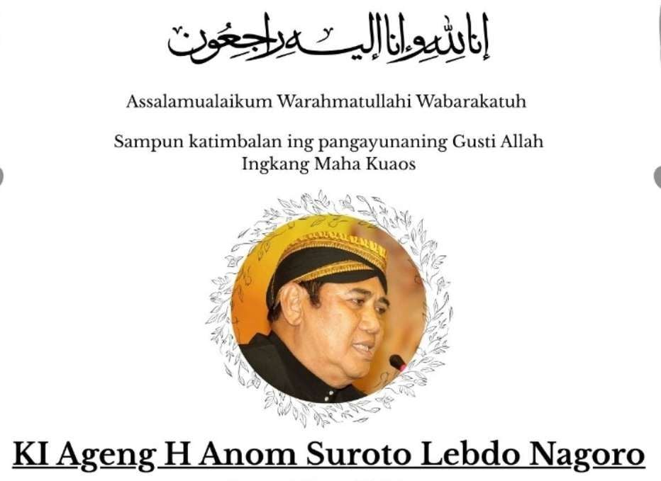 “Iya barusan dapat informasi dari teman teman WA Ki Anom Suroto meninggal dunia. Kami mengucapkan belasungkawa yang sedalam-dalamnya bapak kita, senior kita Ki H. Anom Suroto. Semoga kundur beliau diterima sang dalang sesungguhnya Allah SWT,” ucap Ki Edi Sulistiyono.