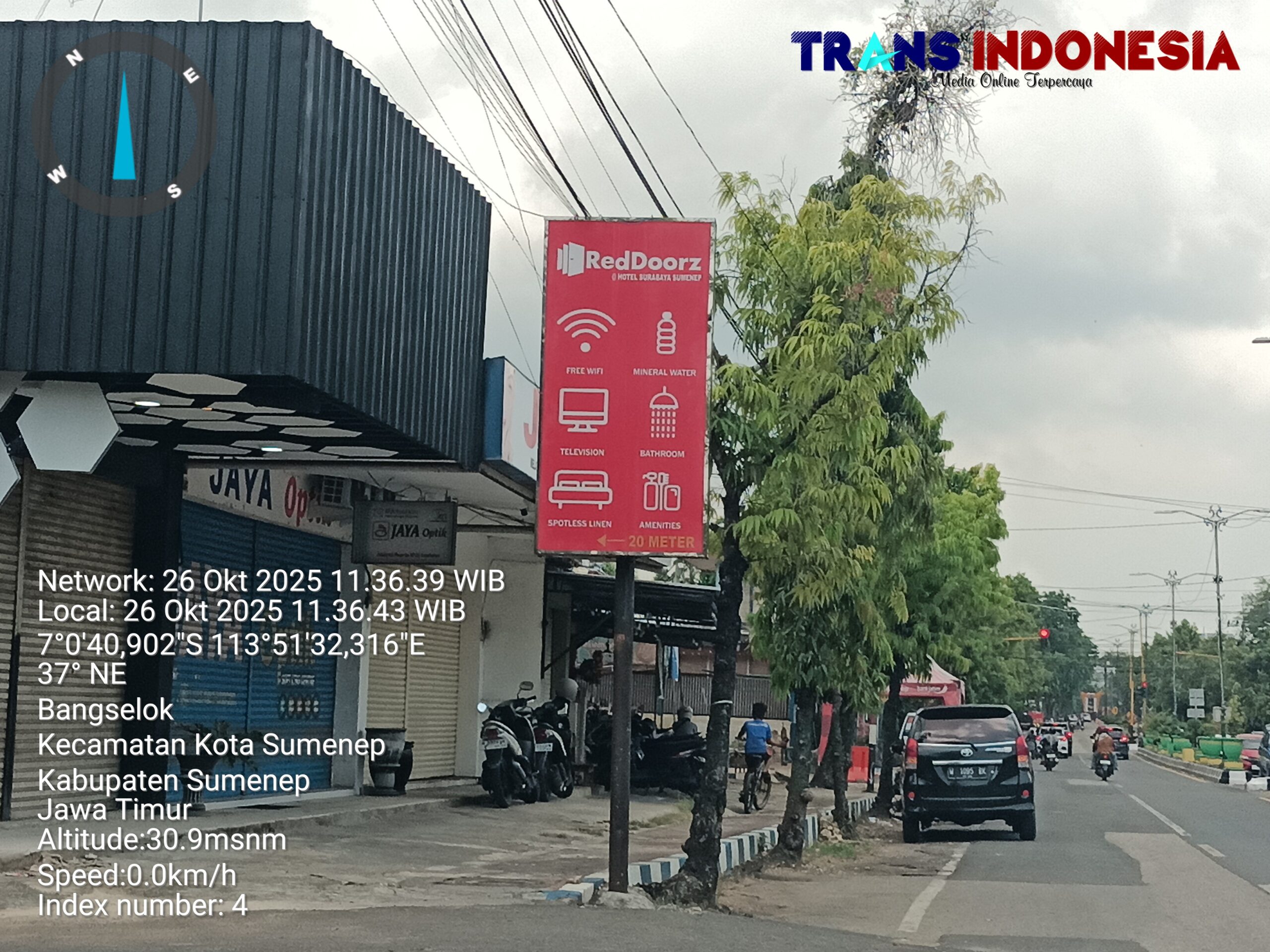 TROL, Sumenep – Papan nama atau neon box milik Hotel Reddos (Hotel Surabaya) yang berada di Kelurahan Bangselok, Kecamatan Kota, Kabupaten Sumenep, Jawa Timur, menuai sorotan warga. Lantaran, papan nama tersebut terpasang di atas trotoar yang seharusnya menjadi area bagi pejalan kaki.