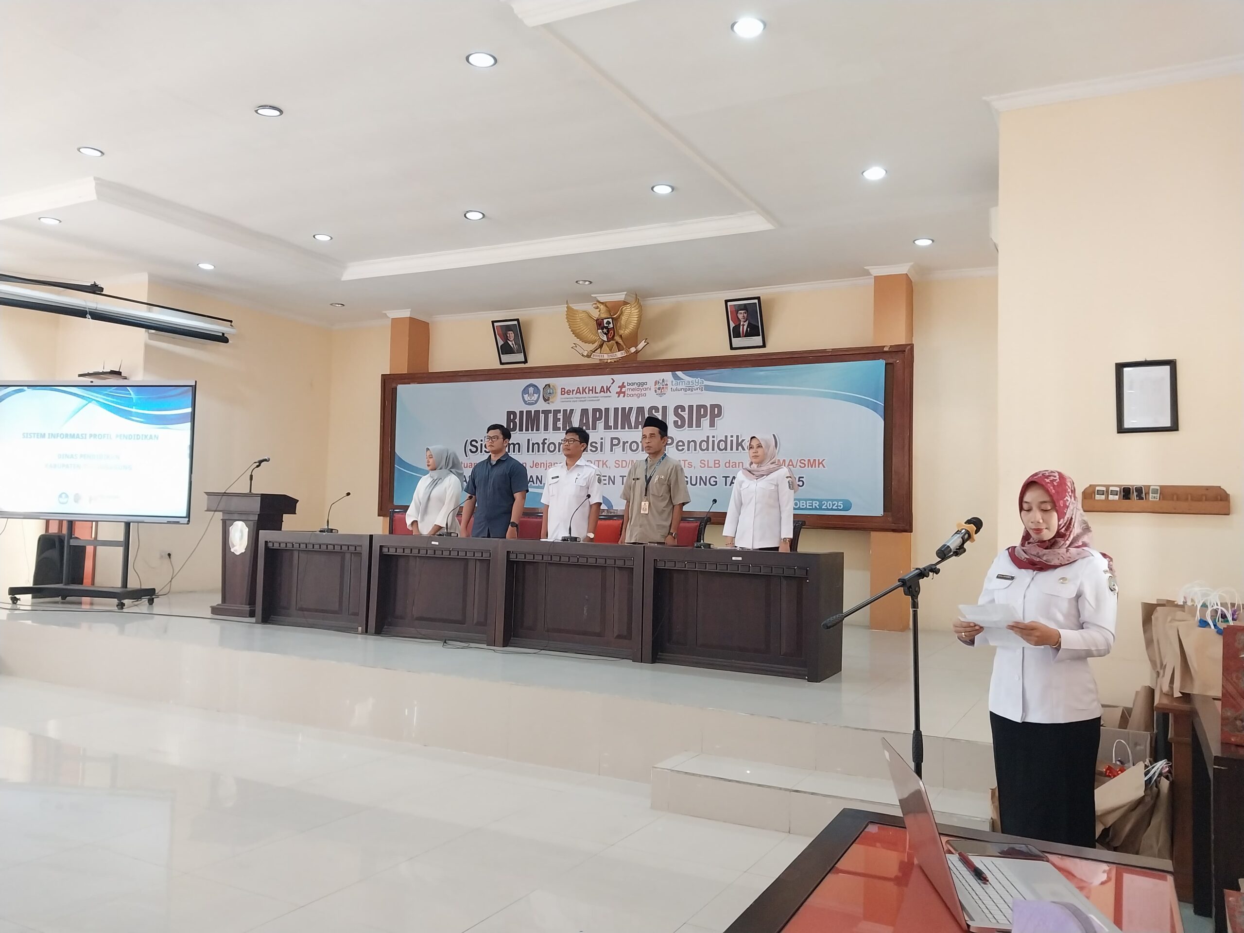 foto: pembukaan bimtek aplikasi sistim lnformasi profil pendidikan di aula dinas pendidikan tulungagung.