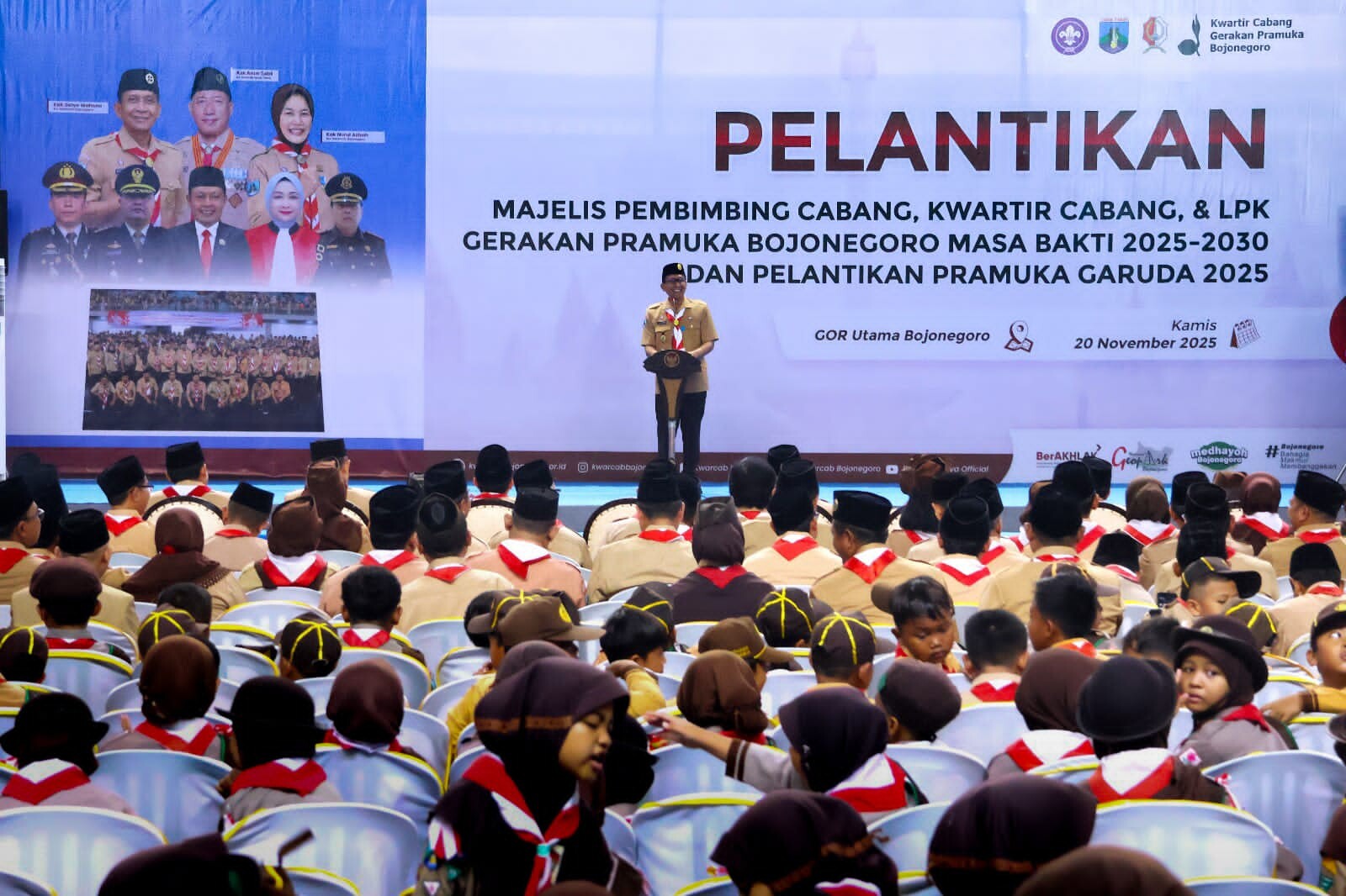 Komitmen tersebut disampaikan dalam rangkaian Pelantikan Majelis Pembimbing Cabang (Mabicab), Pengurus Kwartir Cabang, Pengurus Lembaga Pemeriksa Keuangan (LPK) Masa Bakti 2025–2030, serta Pelantikan Pramuka Garuda, yang digelar di GOR Utama Ngumpakdalem, Kamis (20/11).