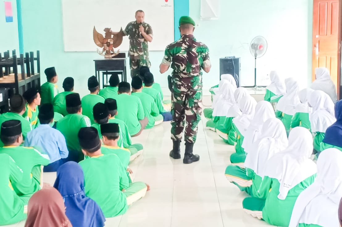 TROL,Bojonegoro, –   Sebagai upaya dalam meningkatkan wawasan, khususnya keikutsertaan dalam menjaga keutuhan Negara Kesatuan Republik Indonesia (NKRI), Bintara Pembina Desa (Babinsa) jajaran Koramil 19/Bubulan, Kodim 0813 Bojonegoro, memberikan pembekalan materi Wawasan Kebangsaan (Wasbang) Pancasila dan Pelatihan Baris-Berbaris kepada ratusan pelajar MTs Tahuhidiyah I, Kecamatan Bubulan, Bojonegoro, Rabu (8/6).