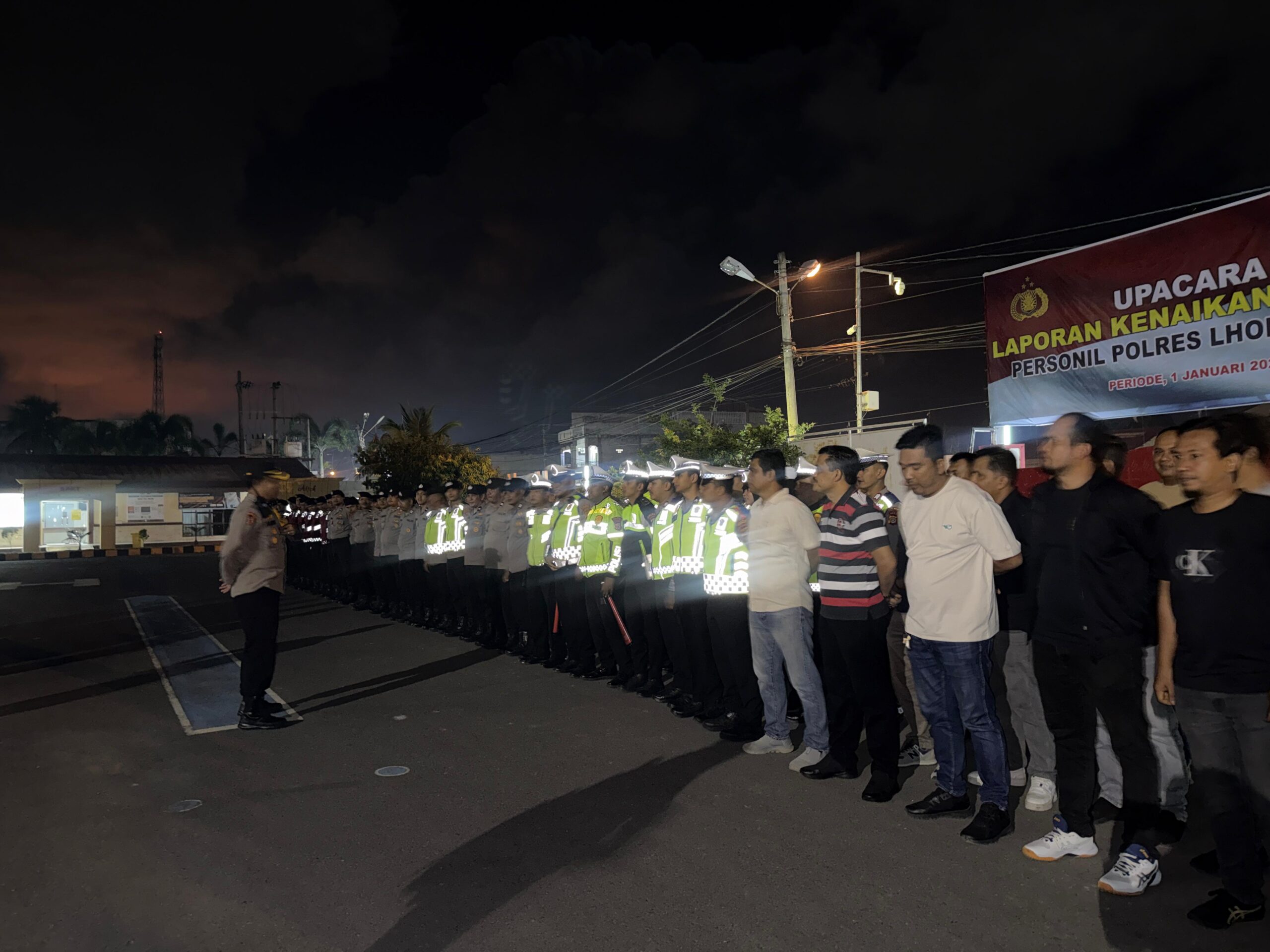 Apel dipimpin Kabag Ops Polres Lhokseumawe sebagai bagian dari upaya memastikan kesiapan aparat dalam mengantisipasi potensi gangguan keamanan dan ketertiban masyarakat selama malam pergantian tahun.