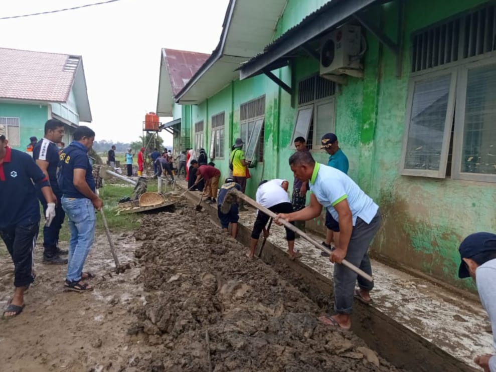 Kecamatan Langkahan menjadi salah satu wilayah terparah terdampak banjir bandang. Ribuan ASN dikerahkan membersihkan kantor kecamatan, fasilitas kesehatan, sekolah, serta dayah atau pesantren.