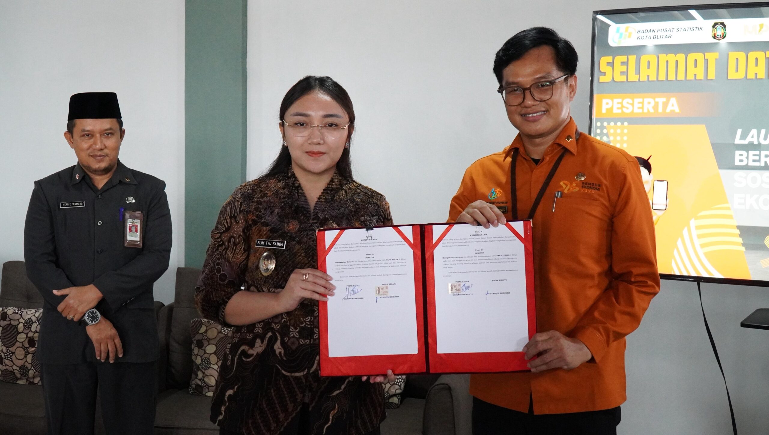 foto: wawali kota blitar dan kepala bps kota blitar di acara peluncuran layanan statistik berdampak kompak kota blitar