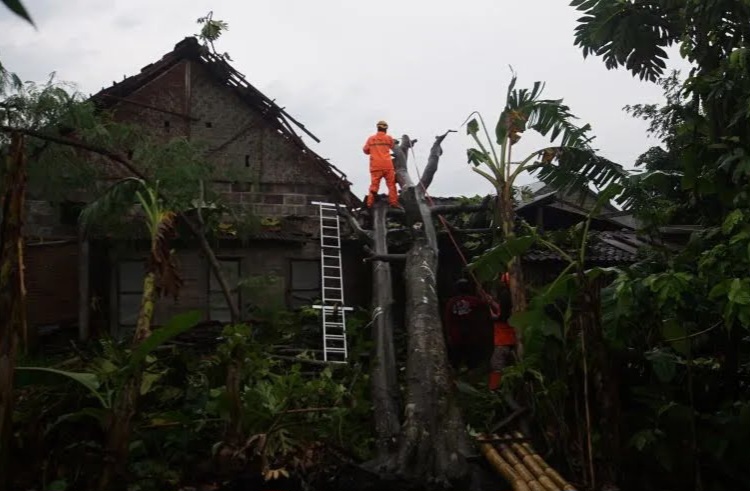 “Untuk rumah yang tertimpa pohon tumbang ada satu di Tanjungsari dan satu di Plosokandang. Selebihnya rata-rata kerusakan pada bagian atap,” katanya.