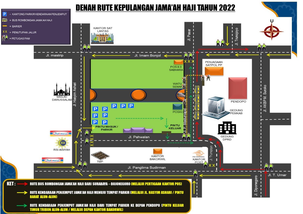Kabag Ops Polres Bojonegoro, Kompol Yusis Budi Krismanto menerangkan dalam proses penyambutan jemaah haji, di sepanjang jalur Babat – Bojonegoro  mulai dari perbatasan Baureno akan dilakukan pengamanan sampai dalam kota, yang akan dibantu oleh Kepolisian Sektor (Polsek).