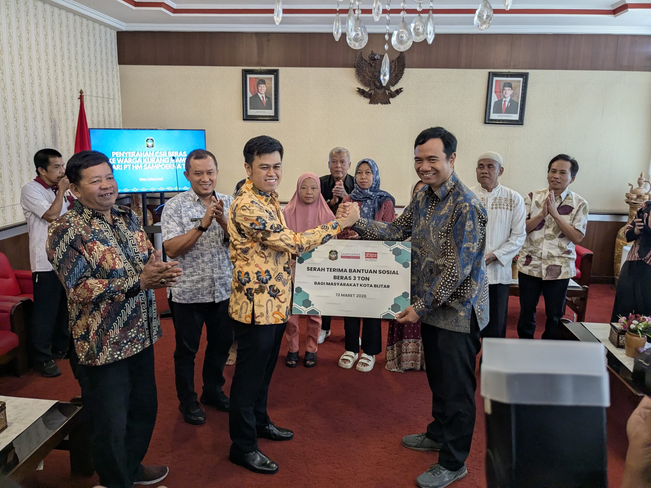 TROL, Kota Blitar – PT HM Sampoerna melalui pabrik SKT Plant Blitar menyalurkan bantuan Corporate Social Responsibility (CSR) berupa tiga ton beras bagi masyarakat di Kota Blitar. Bantuan tersebut diserahkan secara simbolis kepada pemerintah kota di Kantor Wali Kota, Jumat (13/3).