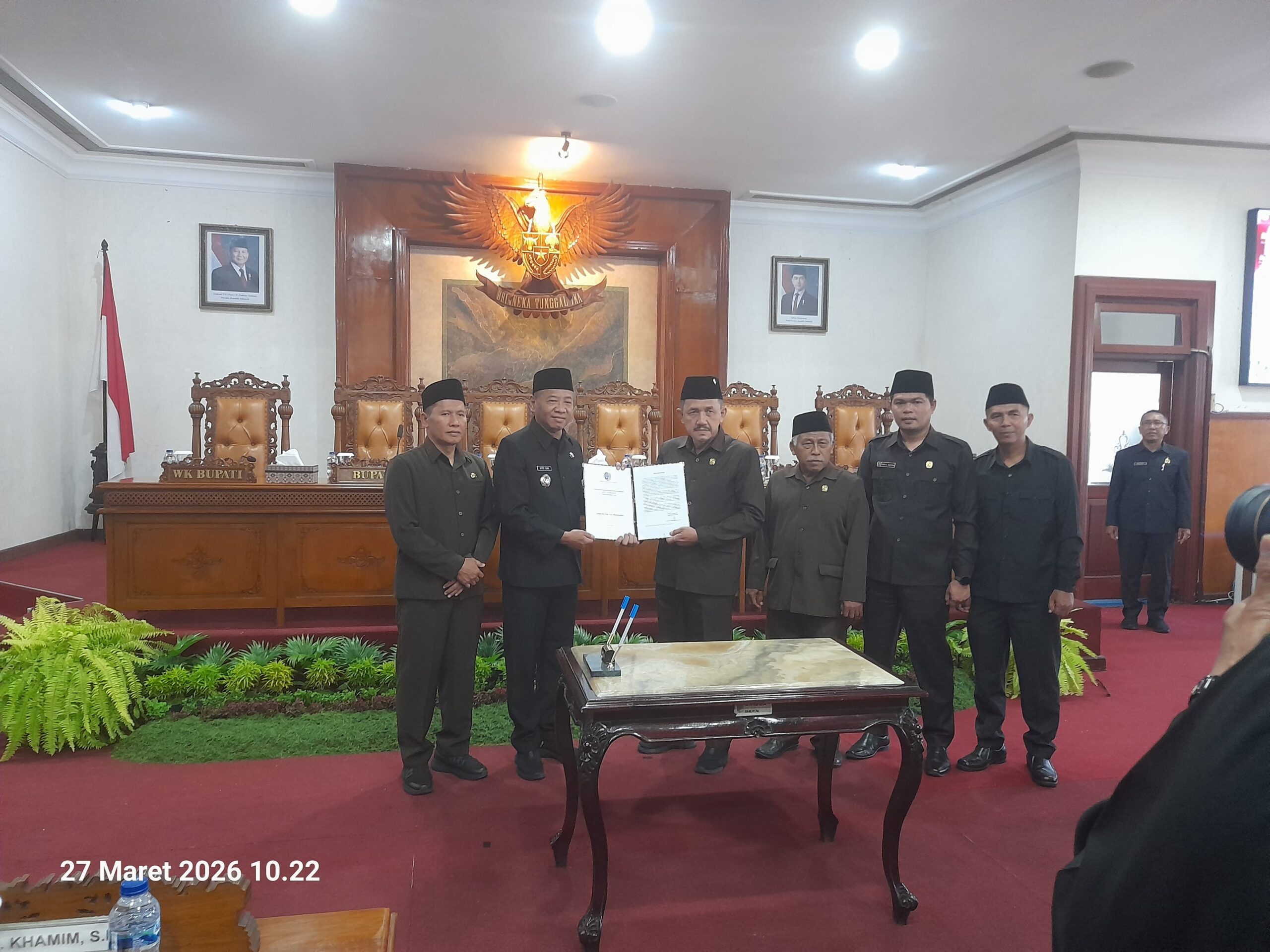 TROL, Tulungagung – Bertempat di ruang Graha Wicaksana lantai II, DPRD Kabupaten Tulungagung menggelar rapat paripurna dengan tiga agenda utama pada Jumat (27/3). Agenda tersebut meliputi pengumuman perubahan Program Pembentukan Peraturan Daerah (Propemperda) Tahun 2026, penyampaian Laporan Keterangan Pertanggungjawaban (LKPJ) Bupati Tahun Anggaran 2025, serta Halal Bihalal dalam rangka Idul Fitri 1447 H.
