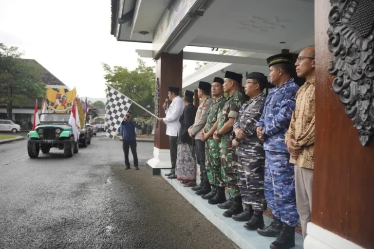 TROL, Pacitan – Ribuan santri dan masyarakat memadati halaman Pendopo Kabupaten Pacitan, Jumat (10/4), untuk mengikuti Apel Kirab Panji Negoro dalam rangka Haul ke-169 KH Abdul Manan Dipomenggolo. Peserta yang hadir berasal dari berbagai kalangan, mulai santri, tokoh agama, hingga jajaran forum koordinasi pimpinan daerah (forkopimda) dan organisasi perangkat daerah (OPD).