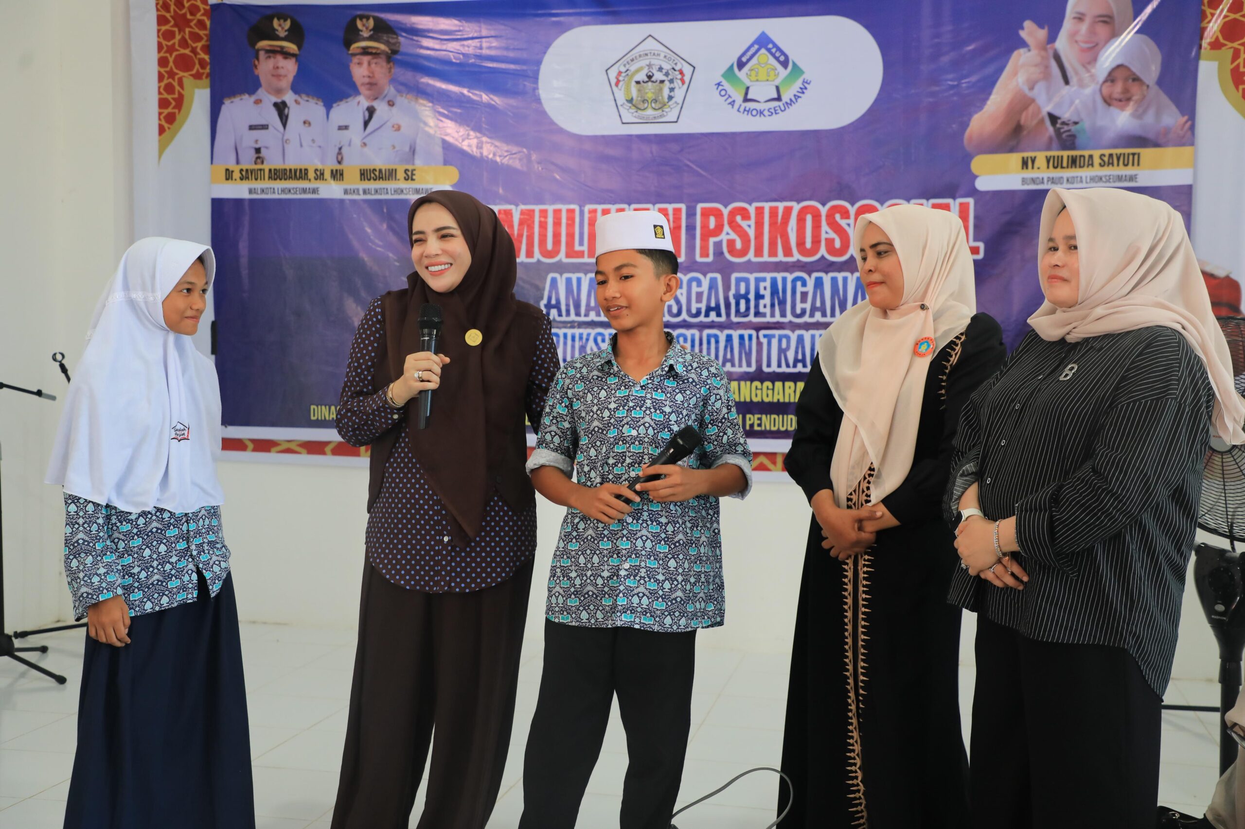 Bunda PAUD Kota Lhokseumawe, Yulinda Sayuti, membuka kegiatan yang menargetkan pemulihan kondisi psikologis siswa pascabencana. Agenda mencakup psikoedukasi trauma dan praktik teknik relaksasi serta manajemen stres oleh konselor.