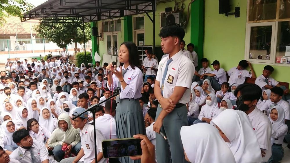 Beberapa siswa belajar di luar ruang. “Dulu saat kita kelas X dijanjikan akan dibangunkan tempat parkir dua lantai tapi sampai sekarang kelas XII tidak ada wujudnya, sumbangan kok ada besarannya seharusnya menyumbang itu sukarela,” ujarnya, Senin (5/9).