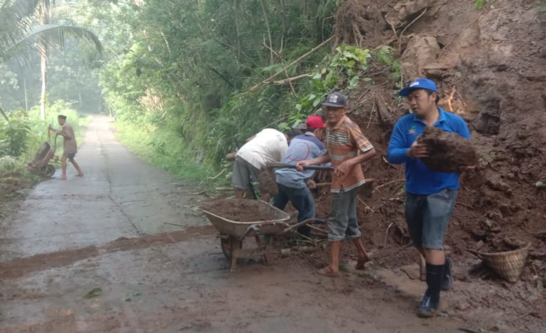 Warga Desa Kalibatur Kerja Bakti Bersihkan Material Longsor dan Lingkungan