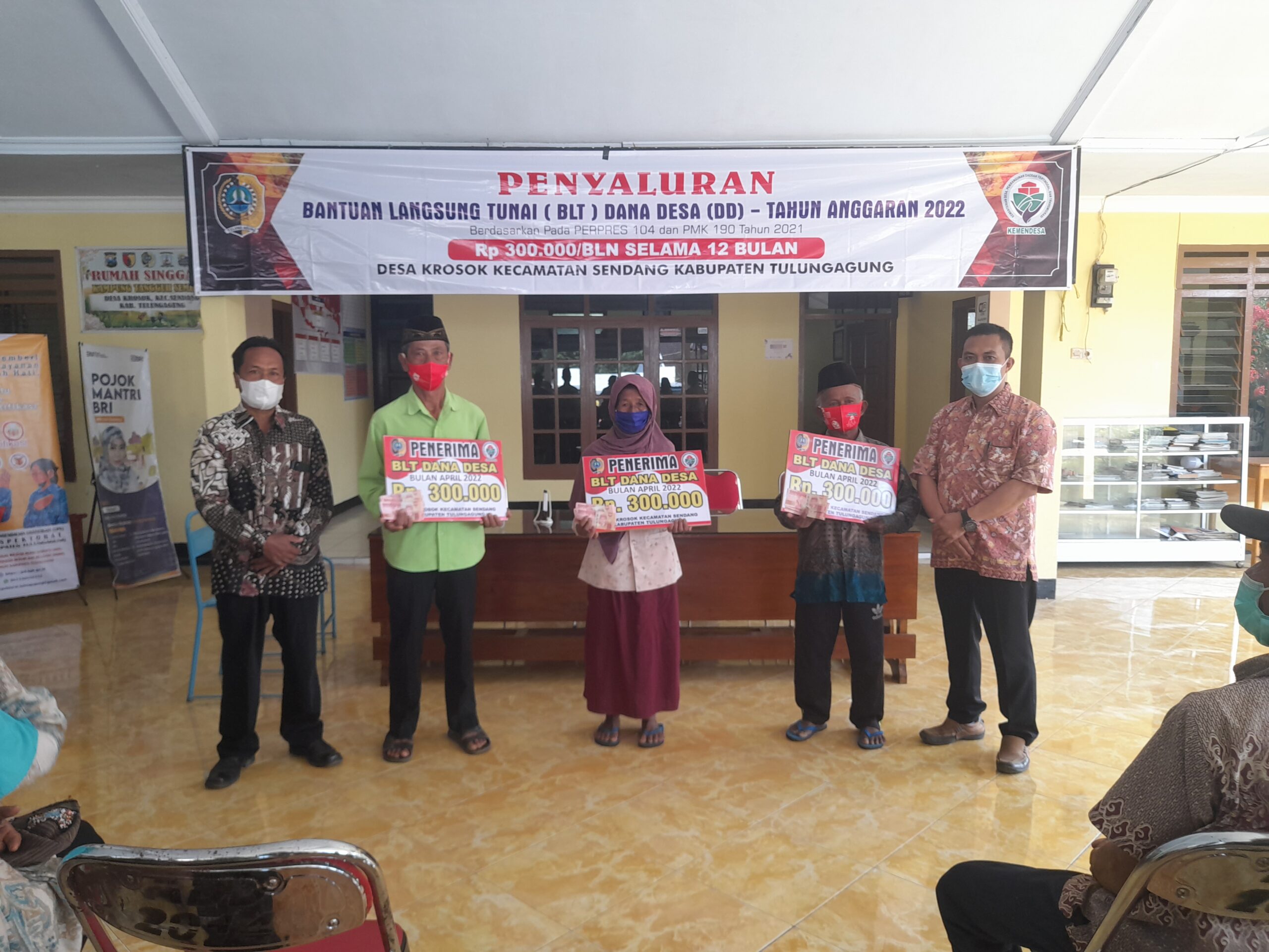 Susanto kepala desa Krosok saat ditemui mengatakan sebanyak 94 KPM menerima Bantuan Langsung Tunai (BLT) yang bersumber dari Dana Desa (DD) tahun anggaran 2022. “Hari ini kita salurkan untuk 3 bulan ke depan, yaitu bulan April, Mei dan Juni,” kata Susanto. “Jadi kita jelaskan kepada KPM, total yang diterima hari ini 900 ribu per KPM bukan 300 ribu, jadi dirapel selama 3 bulan,” jelasnya. “Untuk BLT ini penerimanya tidak bisa tumpang tindih dengan penerima bantuan yang lainnya”, imbuh Susanto.